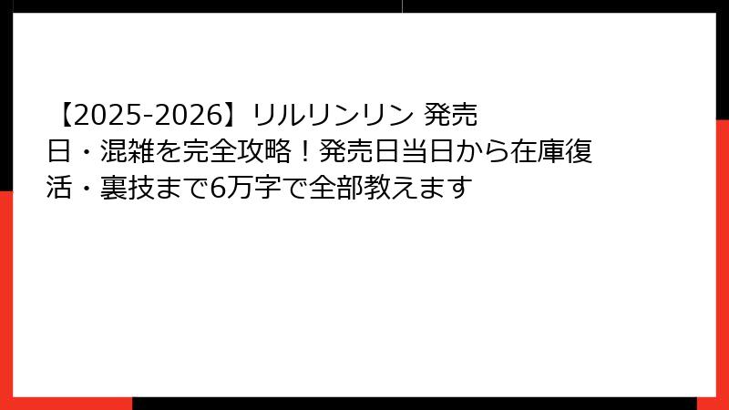 - 【裏技完全版】リルリンリンを混雑ゼロで確実に手に入れる5大メソッドを全部教えます【2025年最新・成功率付き】