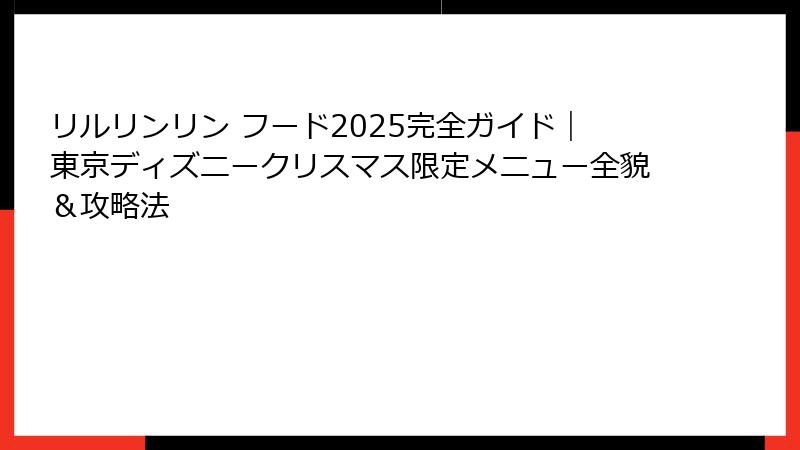 東京ディズニーリゾートのクリスマスシーズンに登場する可愛らしいキャラクター、リルリンリンがモチーフとなったフードメニューは、毎年多くのファンを魅了しています。
