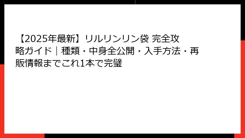 1ページでわかる!2025年リルリンリン袋総まとめインフォグラフィック