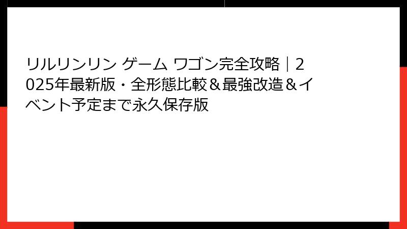- リルリンリン・ワゴンとは?2025年最新版完全ガイド【リルリンリン ゲーム ワゴン】