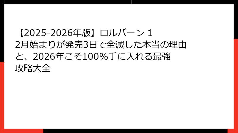 - 【最終結論】2026年12月始まりロルバーンを100%確実に手に入れるための“絶対勝利”スケジュール&チェックリスト