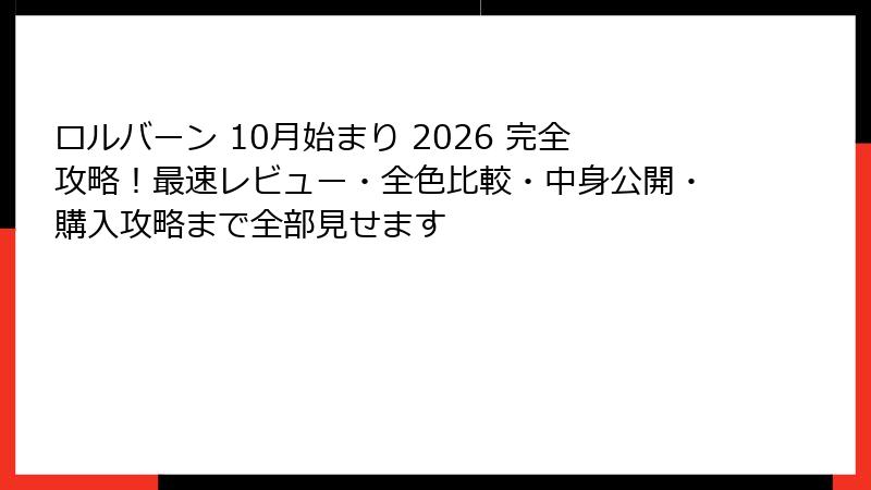 - ロルバーン10月始まり2026年版を確実に手に入れる購入攻略法【完売回避マニュアル】