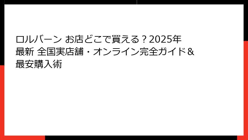- 結局どこで買うのが一番お得?損しないロルバーン購入術&2025年最新キャンペーン情報