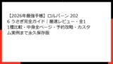 まだロルバーンを持っていない人は、今すぐメモの準備を!