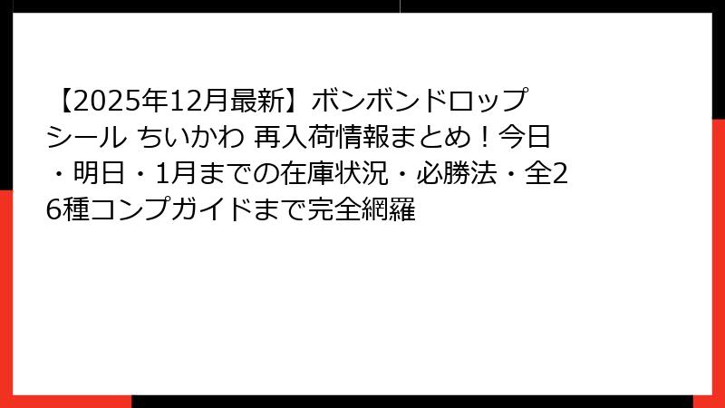 - 【涙が出るほど欲しかった…】ちいかわ×ボンボンドロップシール再入荷戦争のリアルすぎる現場レポートと、絶対に手に入れるための最強攻略法