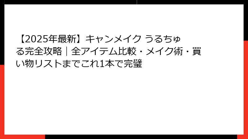 【2025年最新】キャンメイク うるちゅる完全攻略|全アイテム比較・メイク術・買い物リストまでこれ1本で完璧