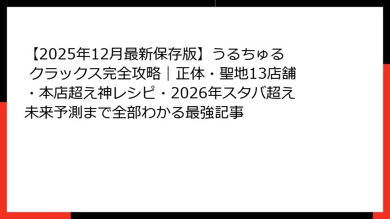 - うるちゅるクラックスが2026年にスタバを超えると言われる5つの衝撃理由と、今すぐ知っておくべき未来予測(完全版)