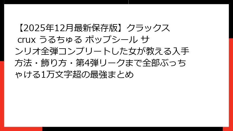 - 【2025年最新】クラックス×サンリオ「うるちゅるポップシール」が可愛すぎて全種類コンプリートした件について本気で語らせてください