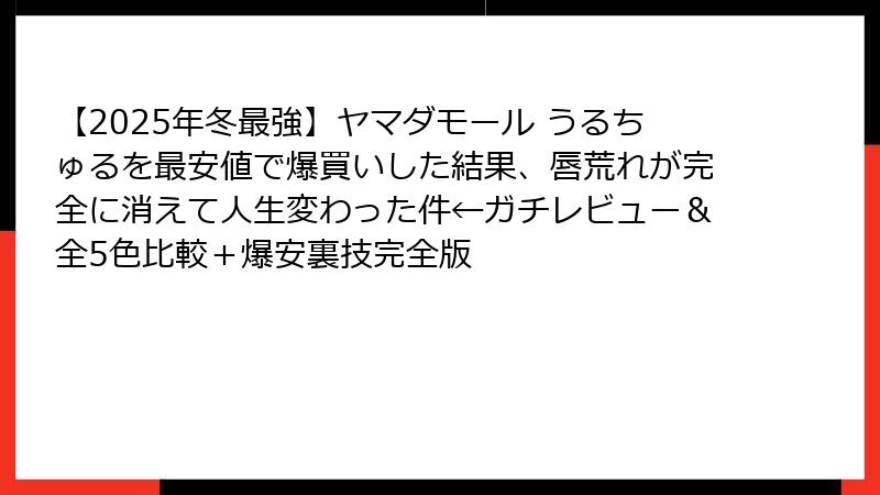 【2025年冬最強】ヤマダモール うるちゅるを最安値で爆買いした結果、唇荒れが完全に消えて人生変わった件←ガチレビュー&全5色比較+爆安裏技完全版