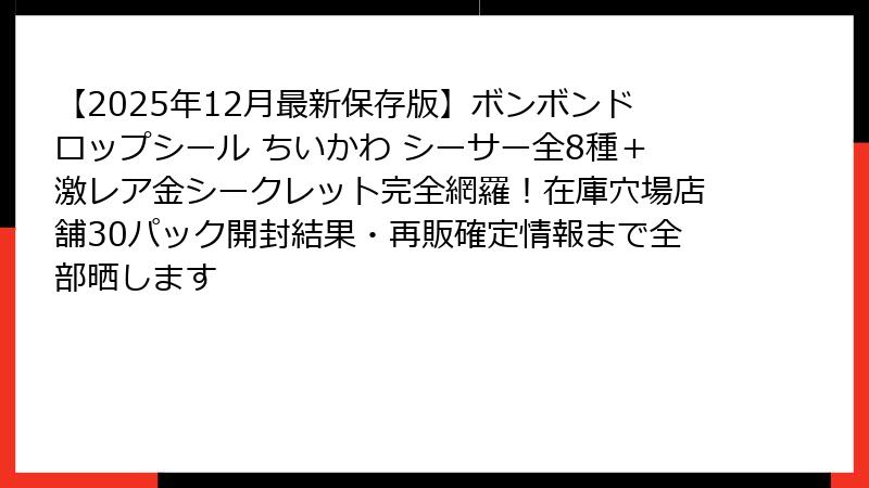 - 【2025年12月最新】ボンボンドロップシールちいかわシーサーの在庫がある店舗一覧