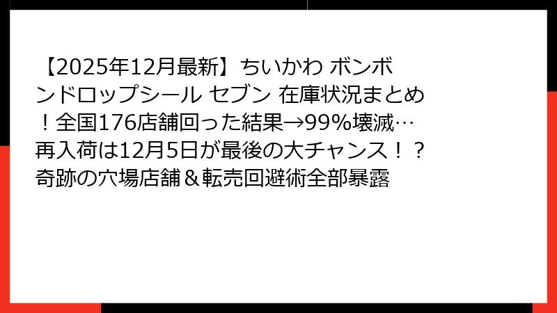 結論から言うと、2025年12月1日現在、都市部のセブンで店頭に残っている確率は0.3%以下です。
