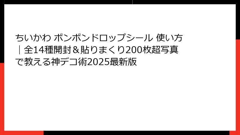 この記事さえ読めば、あなたも明日から「ボンボンドロップシールマスター」です。
