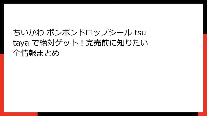 - 購入ガイド – TSUTAYAでちいかわボンボンドロップシールを入手するための実践Tips
