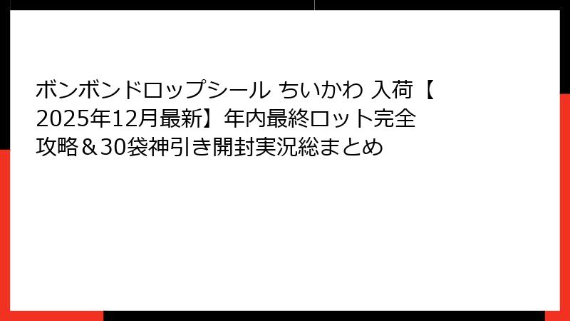 - 【最新入荷情報】ちいかわ×ボンボンドロップシールが遂に再入荷!2025年12月1日朝8時時点の全国リアル状況まとめ