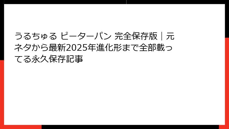 うるちゅる ピーターパン 完全保存版|元ネタから最新2025年進化形まで全部載ってる永久保存記事