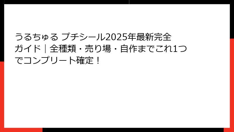 - 全種類徹底解説!現在発売中のうるちゅるプチシール一覧(2025年12月最新)