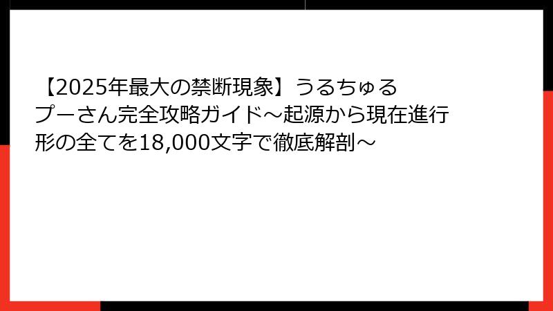 2025年12月1日現在進行形!「うるちゅる プーさん」はどこに向かうのか+完全保存版まとめ