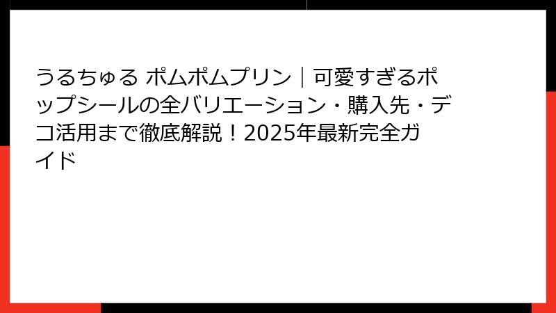 みなさん、こんにちは! 今日はサンリオの人気キャラクター、ポムポムプリンが登場する特別なアイテム、「うるちゅる ポムポムプリン」について徹底的にご紹介します。
