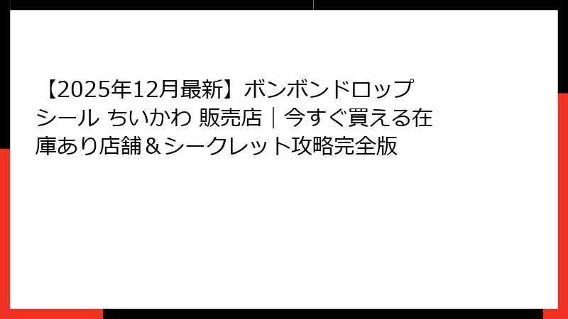 - 【2025年最新】ちいかわ×ボンボンドロップシールが可愛すぎる!全種類&販売店まとめ