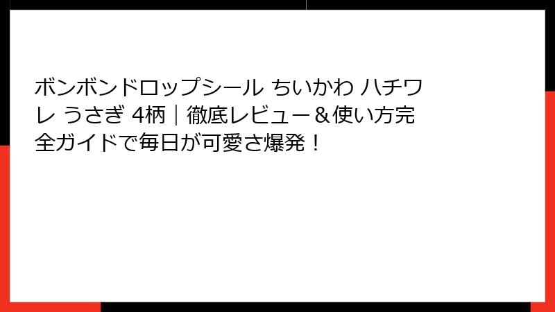 - 4柄徹底レビュー!ボンボンドロップシールでちいかわ、ハチワレ、うさぎの個性を堪能