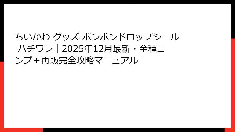 - 【2025年最新】ちいかわ×ボンボンドロップシールが可愛すぎて即完売!ハチワレ推し必見