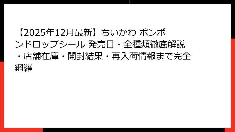 - 次回再入荷はいつ?ちいかわ ボンボンドロップシール完売後の対処法&予約情報