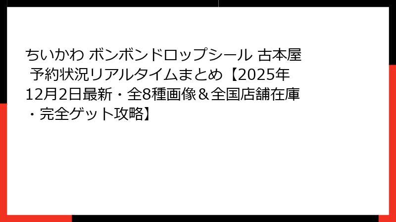 - 【速報】ちいかわ×ボンボンドロップシールが古本市場で予約開始!即完売必至の激レアアイテム登場