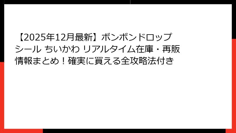 - ボンボンドロップシール ちいかわがまた爆売れ!2025年12月現在の熱狂ぶりがヤバい