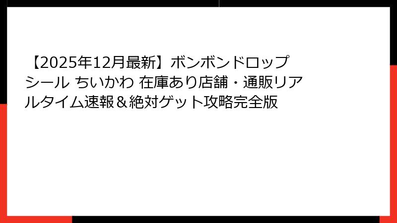 【2025年12月最新】ボンボンドロップシール ちいかわ 在庫あり店舗・通販リアルタイム速報&絶対ゲット攻略完全版