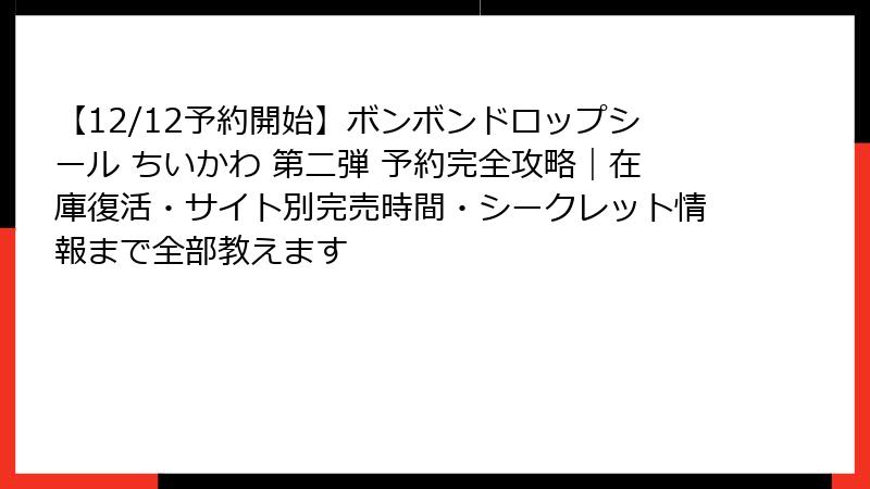 「ボンボンドロップシール ちいかわ 第二弾 予約」で検索してここに来たということは、確実にあなたは“あの地獄”を経験した一人でしょう。