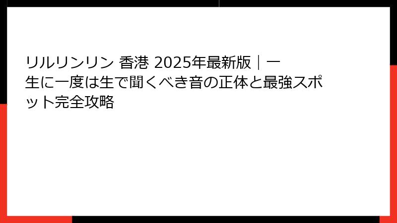 - これを読んだあなたはもう香港通。 次にリルリンリンを聞く日はいつにしますか?