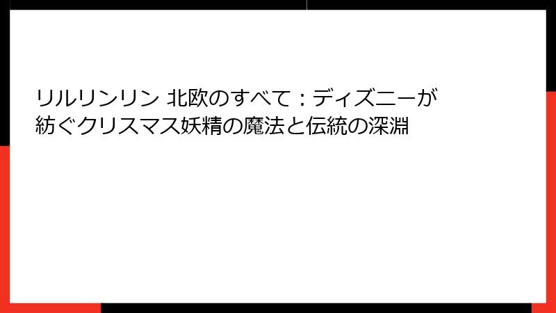 リルリンリン 北欧の探求をまとめると、この妖精はクリスマス文化の進化を象徴し、未来へ喜びを届けます。