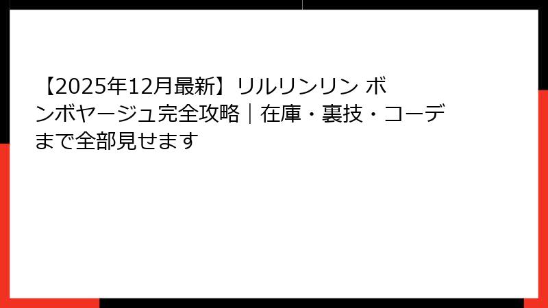 「リルリンリン ボンボヤージュ 2025」で検索した瞬間、あなたが本当に知りたいこと