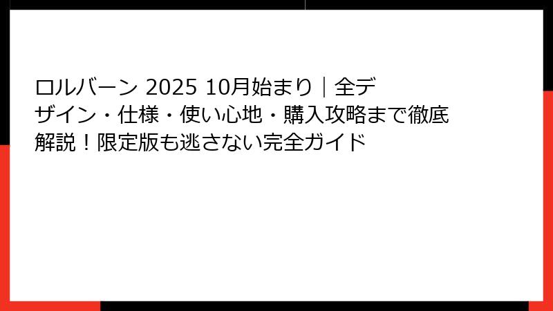 以上、ロルバーン 2025 10月始まりの完全購入ガイドでした。