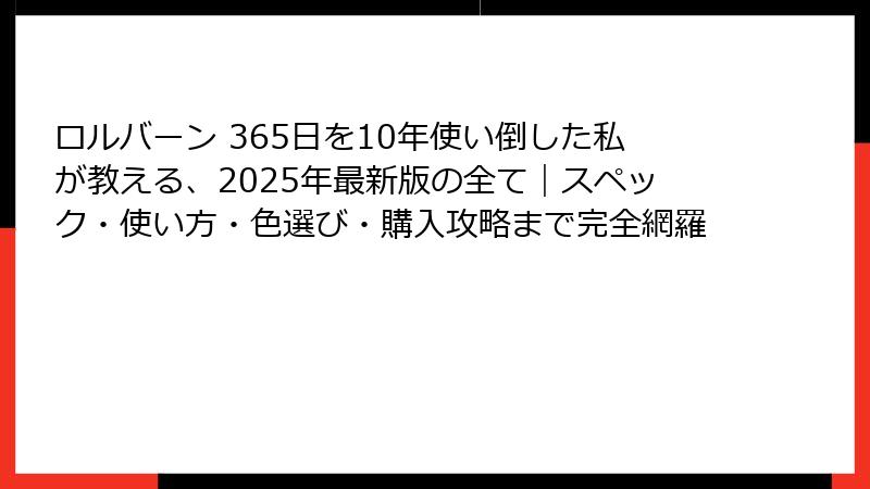 ロルバーン 365日を10年使い倒した私が教える、2025年最新版の全て|スペック・使い方・色選び・購入攻略まで完全網羅