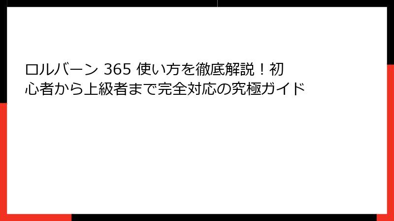 - ロルバーン 365のセットアップ方法:初心者でも簡単に始められるステップ