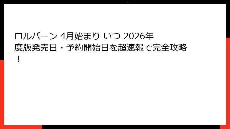 まとめ:2026年ロルバーン4月始まりを確実に手に入れるための第一歩