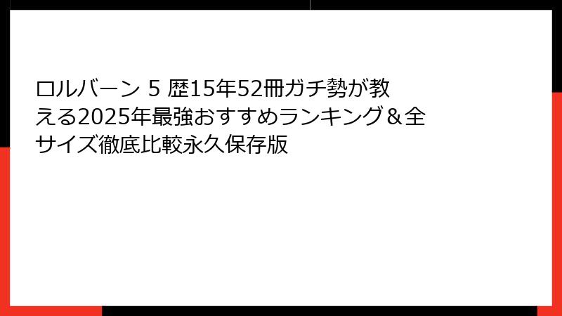 - 【冒頭で検索意図を完全網羅】ロルバーンって結局どれがいいの?2025年現在の一番正直な答え