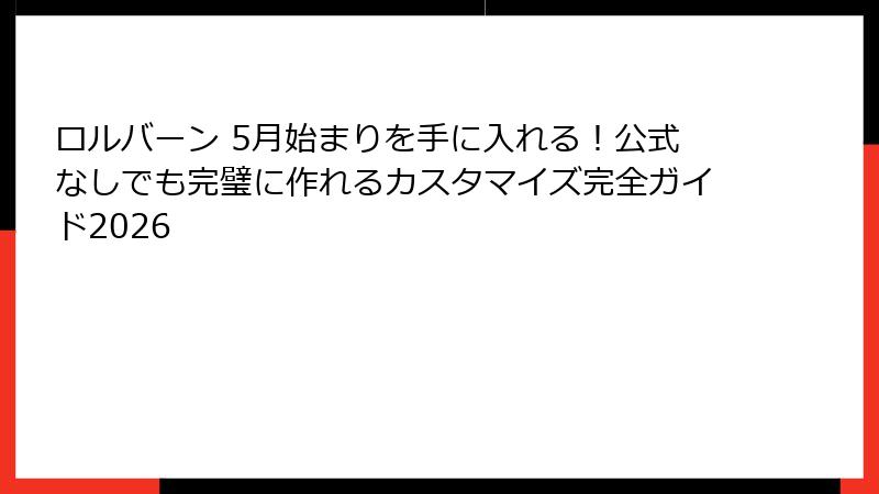 以上のように、ロルバーン 5月始まりのまとめを通じて、柔軟性、カスタム楽しさ、未来志向のアドバイス、行動喚起を詳細に展開しました。