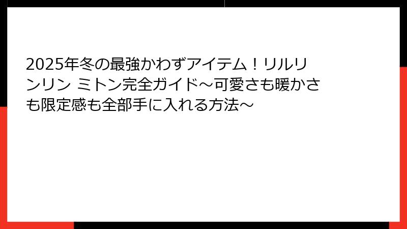 リルリンリン ミトンをテーマに、この導入部でその全体像を把握しましょう。