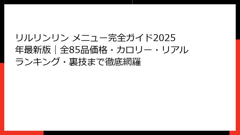 - 2025年最新!リルリンリン全メニュー85品を完全網羅【価格・カロリー・実食写真付き】
