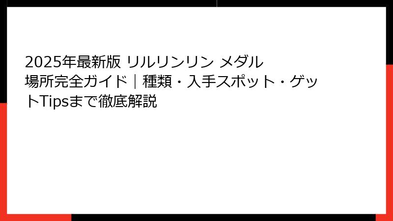2025年最新版 リルリンリン メダル 場所完全ガイド|種類・入手スポット・ゲットTipsまで徹底解説