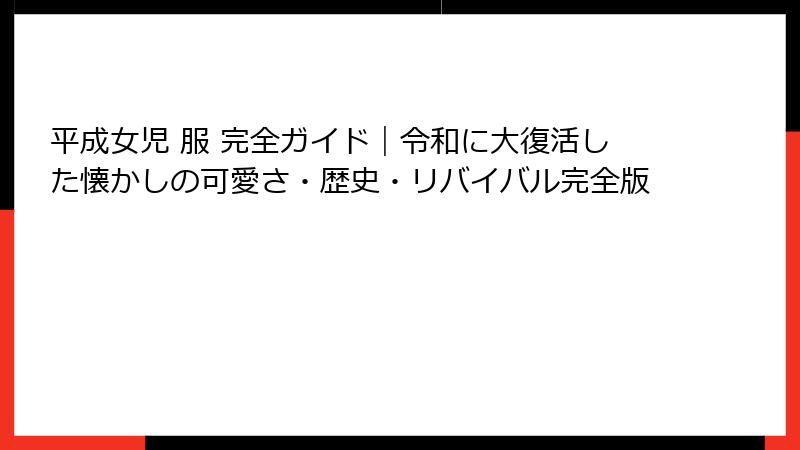 平成女児 服 完全ガイド|令和に大復活した懐かしの可愛さ・歴史・リバイバル完全版