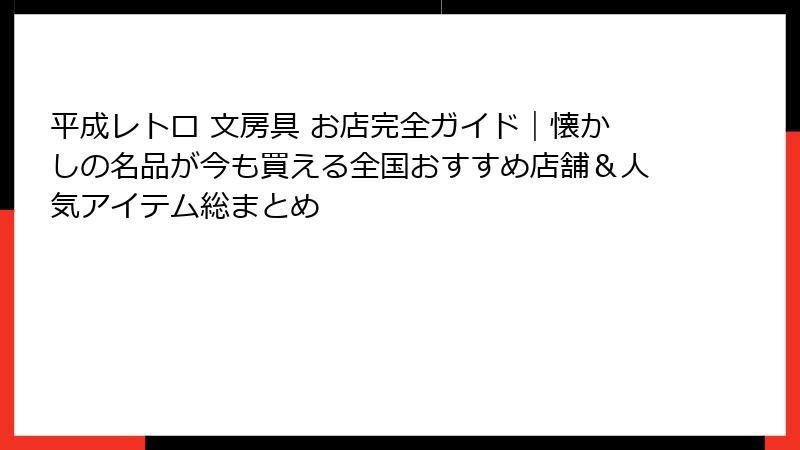 平成レトロ 文房具 お店完全ガイド|懐かしの名品が今も買える全国おすすめ店舗&人気アイテム総まとめ