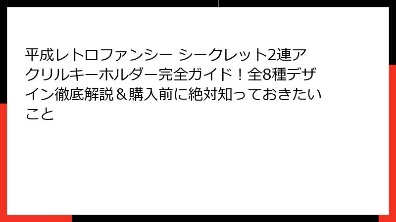 平成レトロファンシー シークレット2連アクリルキーホルダー完全ガイド!全8種デザイン徹底解説&購入前に絶対知っておきたいこと