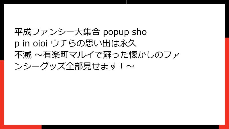 みなさん、こんにちは! 今日は、懐かしい平成時代のファンシー文化が大集合するイベント、「平成ファンシー大集合 popup shop in oioi ウチらの思い出は永久不滅」について、詳しくお届けします。