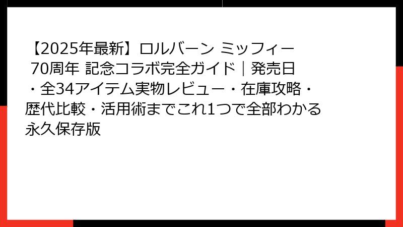 「ロルバーン ミッフィー 70周年」で検索した人が最初にたどり着くべき“最強の記事”を目指して、全力で書き上げました。