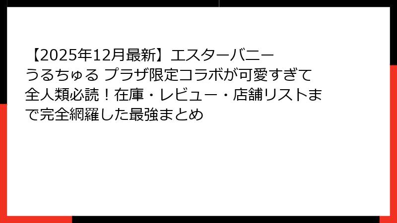 - 【2025年12月5日 23時59分最新】エスターバニーうるちゅるを今すぐ買えるPLAZA店舗リスト