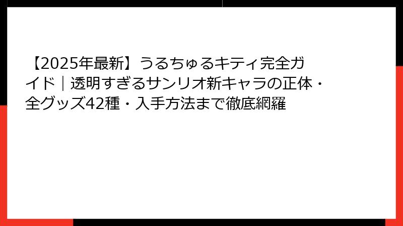 【2025年最新】うるちゅるキティ完全ガイド|透明すぎるサンリオ新キャラの正体・全グッズ42種・入手方法まで徹底網羅