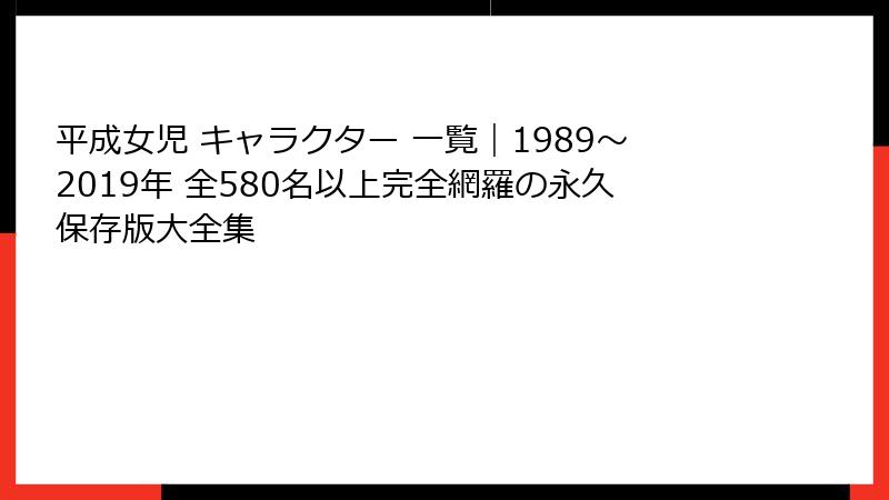 この記事は、平成元年(1989年)から平成31年(2019年)までの約30年間に放送された女児向けアニメに登場するキャラクターを、ありとあらゆる作品から徹底的に網羅した、日本最大級のデータベース記事です。